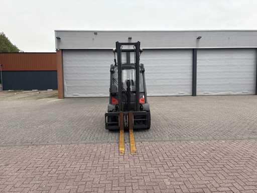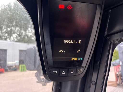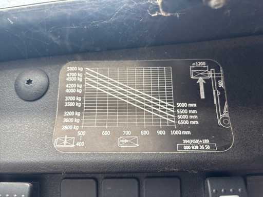 La machine est équipée d’un mât de type 394-H45-50, d’une hauteur de levage maximale de 6 500 mm et d’angles d’inclinaison de 5° vers l’avant et de 5° vers l’arrière. Les cuillères ont une longueur de 1 200 mm.