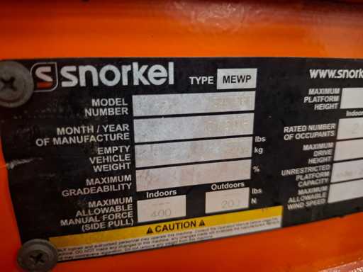 2018 Snorkel S4726E plate-forme de travail aérienne