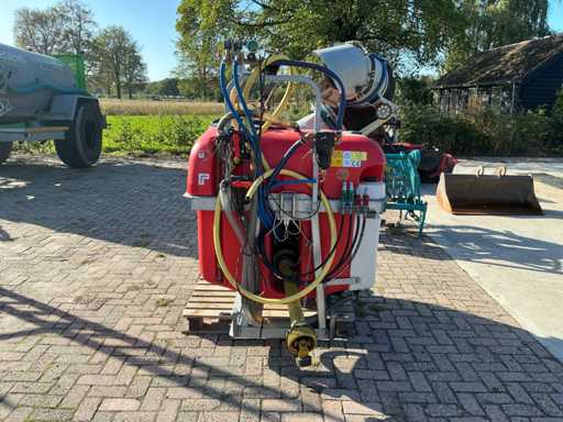 Equipé de : souffleur, phares de travail, prise de force avec roue libre, raccord hydraulique, capacité du réservoir 400L, réservoir d’eau propre, réservoir de lavage des mains avec robinet