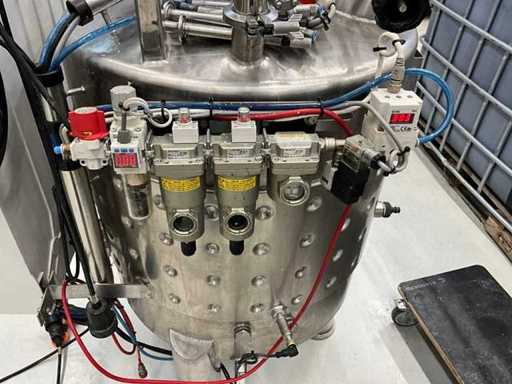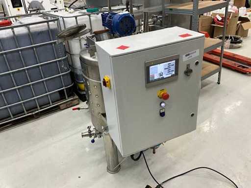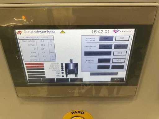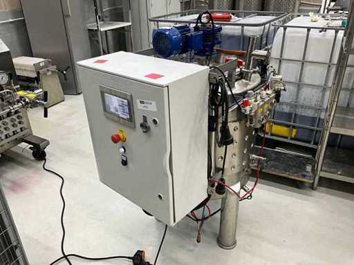Petit réacteur avec agitateur un plateau à palette, double paroi. Avec armoire et panneau de commande tactile