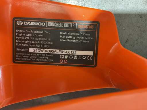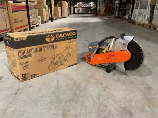 Équipé d’un moteur essence 2 temps de 74cc ; réservoir de carburant de 1100 ml ; Diamètre de la lame de scie 350 mm ; Diamètre de l’arbre 25,4 mm ; Profondeur de coupe maximale 90° (droit) 125 mm ; Vitesse maximale 9500 r/min ; Pas de vitesse de chargement 3000 r/min ; 2 vitesses : ; Scie à ruban ; Scie diamantée ; Hydre; Filtre et ficelle ; Inutilisés en boîte (Dimensions emballage de transport 720x265x450 mm lxwxh, poids 14 kg) ; Inutilisé
