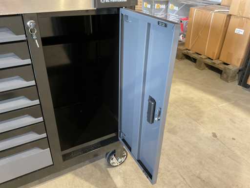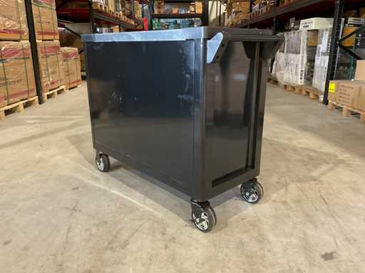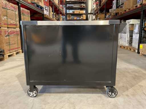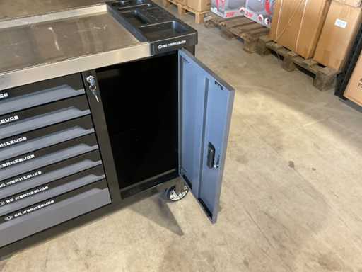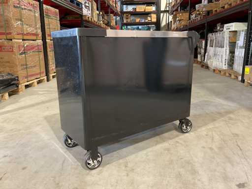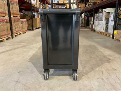 Équipé de 7 tiroirs, dont 7 sont remplis d’outils ; porte latérale ; outils professionnels en chrome-vanadium ; chariot à outils robuste ; plan de travail robuste ; 4 roues ; poignée robuste ; Non utilisé dans la boîte (dimensions de transport 105x50x80 cm)
