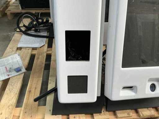 Équipé d’un écran tactile avec lecteur de codes-barres et lecteur d’empreintes digitales, colonne pour terminal de paiement.