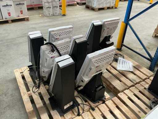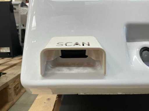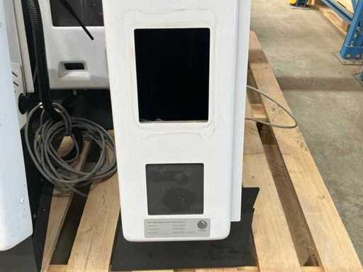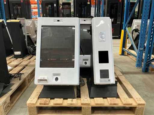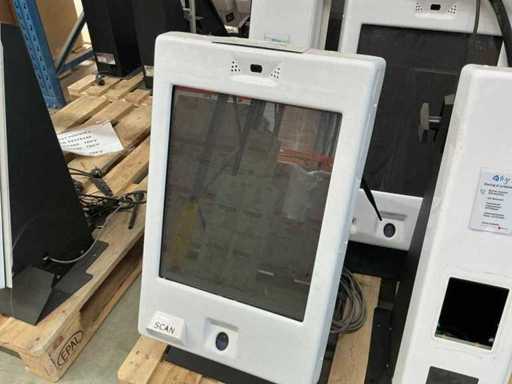 Équipé d’un écran tactile avec lecteur de codes-barres et lecteur d’empreintes digitales, colonne pour terminal de paiement.