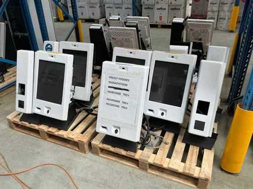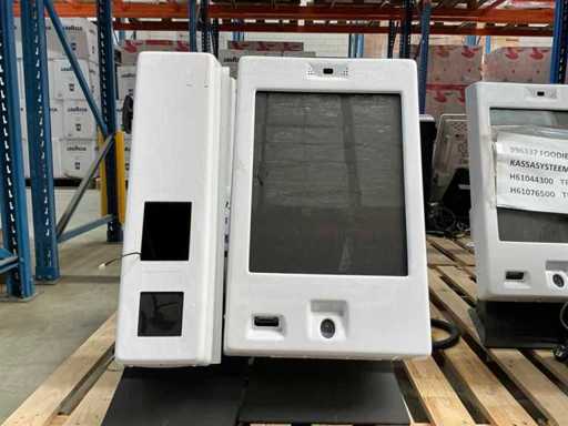 Équipé d’un écran tactile avec lecteur de codes-barres et lecteur d’empreintes digitales, colonne pour terminal de paiement.