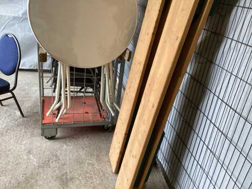4 bancs de jardin, 10 chaises, 5 tables debout