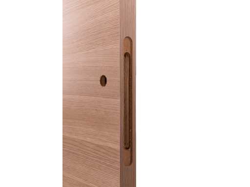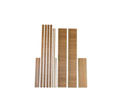 Porte (noyau tubulaire à copeaux) avec cadre, finie avec un motif en bois brun. Facile à installer et facile à entretenir. Équipé de serrures et de charnières. Ce sont des portes réversibles. Ce lot comprend : 5 portes 930 x 2015 MM Cadre 5 X MDF 400 MM