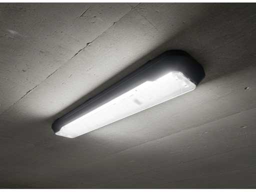 IP65 étanche, couleur du produit gris foncé, dim. 683 x 138 x 84mm, matériau PC & réflecteur en fer, kit de montage inclus, deux entrées T8 Tube, tube LED TL non inclus, tension 220-240V, connexion L N d’un côté, max 18 watt, Attention informations erronées sur la couleur du produit sur les boîtes, compatible avec les tubes TL de 60cm, SKU 00651