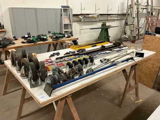 Y compris les roulettes ; les rails d’arrêt ; Pinces et conducteurs