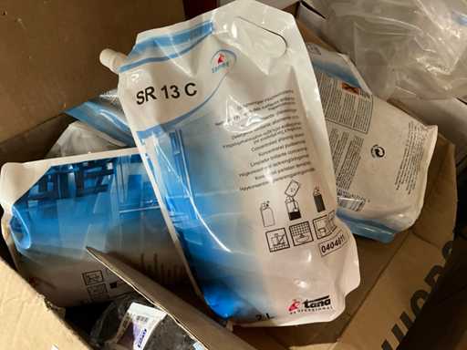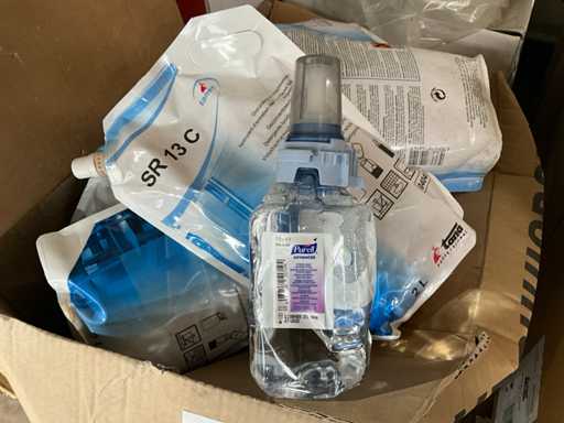 Composé de : mousse Purel Advance, pack de recharge nettoyant brillant Tanet SR13C, rogostop extra, rogofresh, gel alcool Tork, Green care energy perfect, matériau de montage boîte