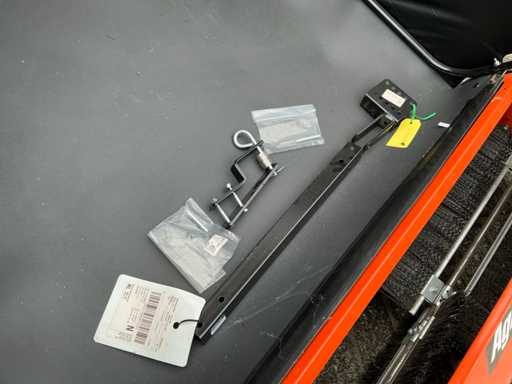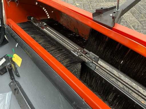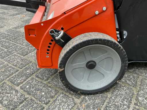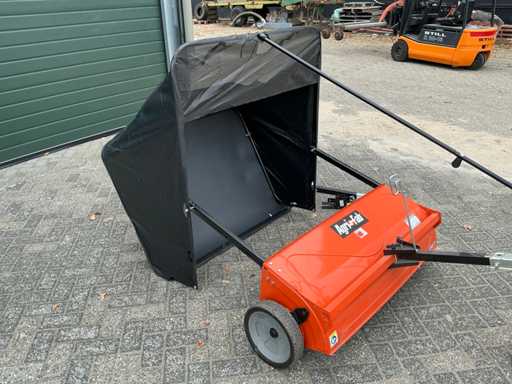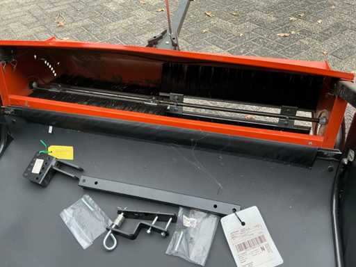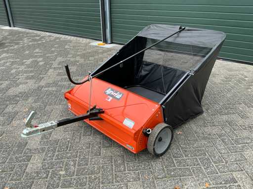 Equipé de : barre de remorquage supplémentaire, attelage K50, inclinable mécaniquement, avec tube pour l’attelage de remorque pliant, bouton de traction pour régler la hauteur de la brosse, levier d’inclinaison, attelage de remorque universel, 708 ltr. Le sac de ramassage, le pliage facile, l’attelage mobile de la remorque permettent de tirer la balayeuse des deux côtés et au milieu, de sorte que les deux tondeuses à éjection arrière et à éjection latérale peuvent être utilisées, d’ajuster les brosses à la hauteur souhaitée, pour balayer et ramasser ensemble l’herbe coupée, les feuilles et autres résidus.
