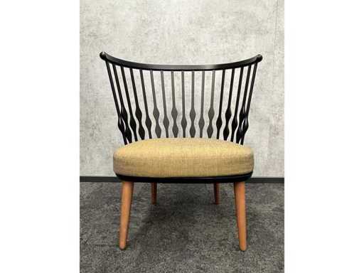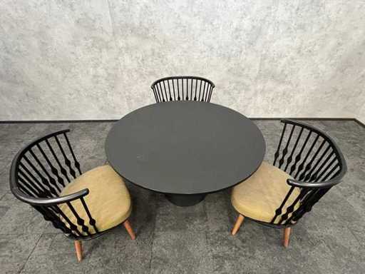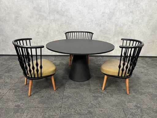 le lot comprenant 1x table de conception Andreu World 'Reverse Collection'. dessin de Piergiorgio Cazzaniga. ----- 3 fauteuils au design Andreu World Nub. Conception de Patricia Urquiola. Sombre. environ hxbxd 90x80x60 cm.