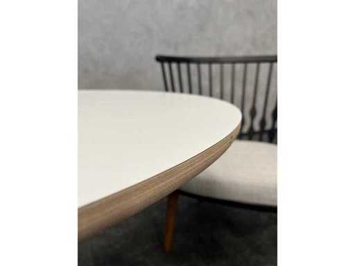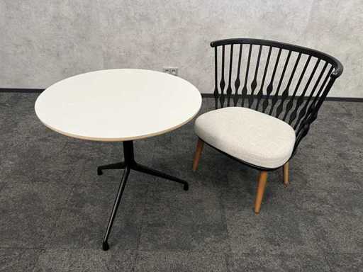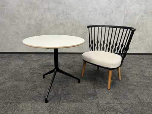 un lot composé de 1x fauteuil Andreu World Nub design. Conception de Patricia Urquiola. Sombre. environ hxbxd 90x80x60 cm. ---- table de conception 1x Hay.