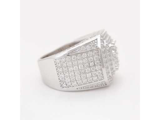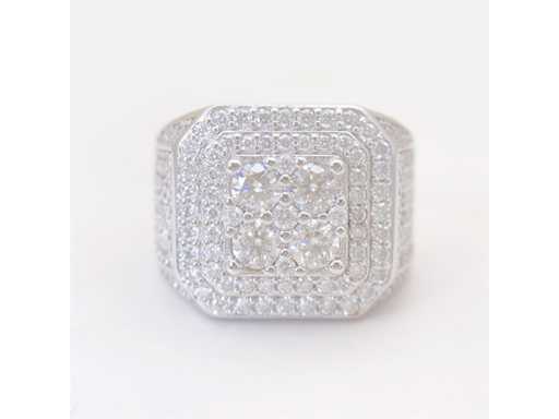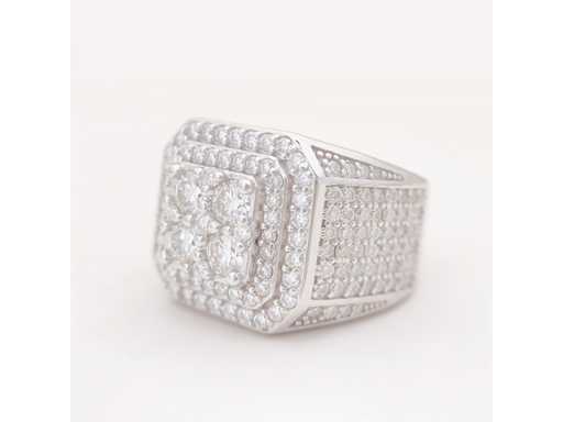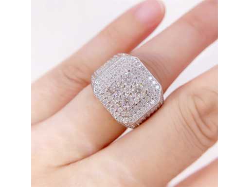 brillants Pierre précieuse : Moissanite ; Quantité : 4 pièces ; Coupe : Coupe brillante ; Poids (carat) : 1,00 carat ; Couleur : F ; Pureté : VVS ; Coupe : Très bien ; Pierre précieuse (secondaire) : Moissanite ; Quantité : 247 pièces ; Coupe : Coupe brillante ; Poids (carat) : 4,30 carats ; Couleur : F ; Pureté : VVS ; Coupe : Très bien ; Joyau : Anneau ; Marque : Harmony ; Poids : 11 grammes ; Taille de bague (sur mesure*) : 54 (17,25 mm) ; Matériau : Argent sterling de qualité platine de haute qualité (925) ; État : Neuf ; Emballage : boîte à bijoux ou étui en velours ; Explication : La qualité a été prise du rapport correspondant à l’article. L’évaluation est une évaluation d’un négociant certifié en diamants, basée sur les prix à la consommation ; Informations supplémentaires : Le poids mesuré des pierres précieuses est basé sur la taille des diamants ; Prix grand public : 1 200 €