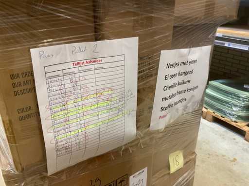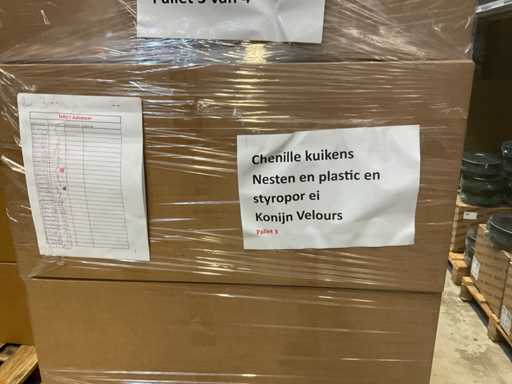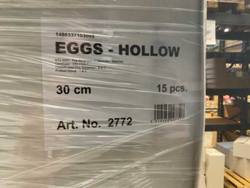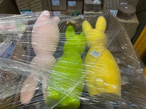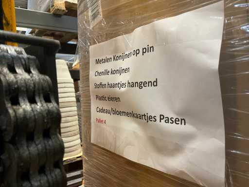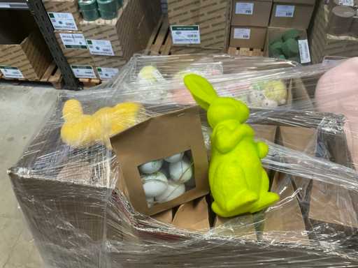 4 palettes d’articles de Pâques, y compris différents types d’œufs, de lapins, de nids, etc.