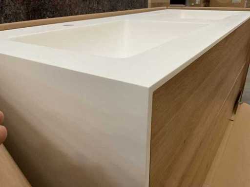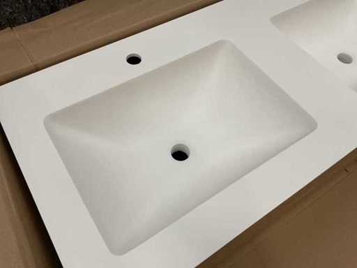 Avec deux tiroirs à pousser pour ouvrir. Incluant double évier, blanc mat, avec deux trous de robinet.
