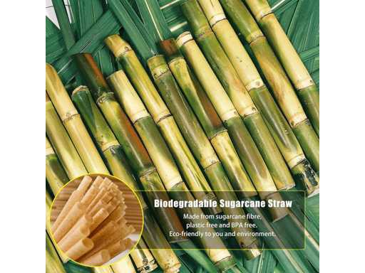 Le lot est composé de pailles fabriquées à partir de pulpe de canne à sucre 100 % Upcycle (bagasse), qui est une alternative écologique aux pailles en plastique traditionnelles.