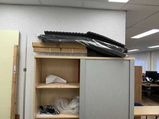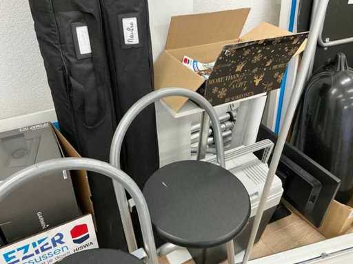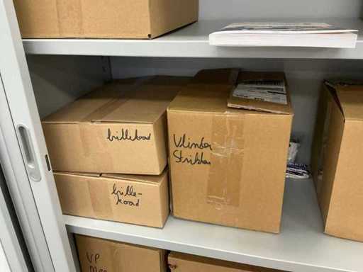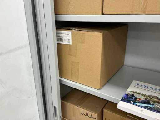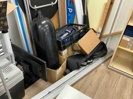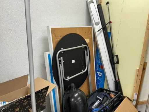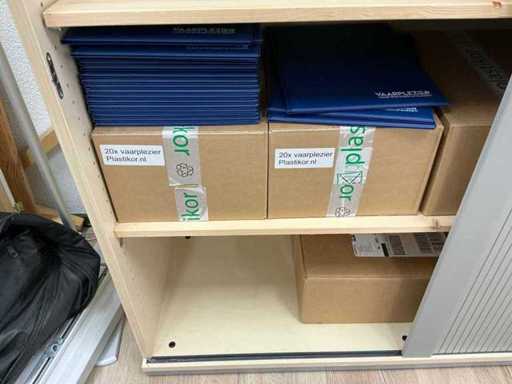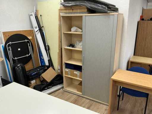 2 armoires de rangement, matériel de lecture, accessoires de navigation, articles publicitaires et promotionnels, banderoles à enrouler, etc.