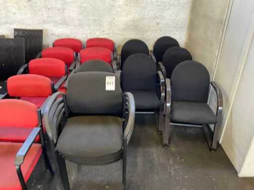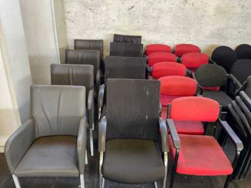 Inventaire de bureaux composé de 10 classeurs dans différents styles, couleurs et agencements, dont 24 chaises de conférence de différents designs et formats.