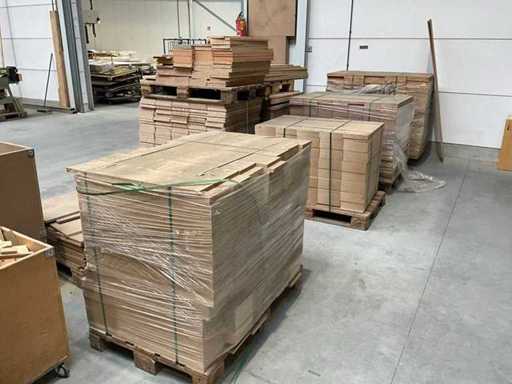 Environ 8 palettes avec diverses pièces en MDF et en carton comprimé