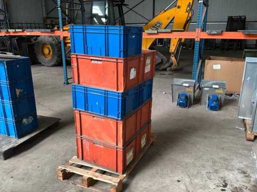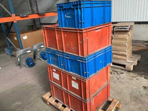 Parmi lesquels 3x bleus avec des dimensions approximatives de 54 x 36 x H 27 cm et 3x rouges avec des dimensions d’environ 76 x 56 x H 30 cm