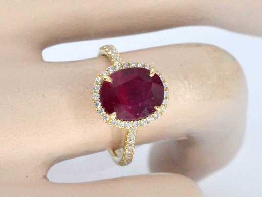 Bague d’entourage en or avec diamants et rubis