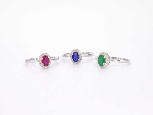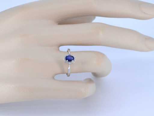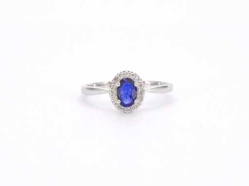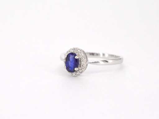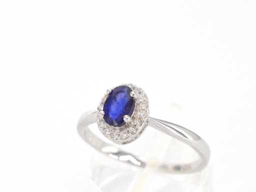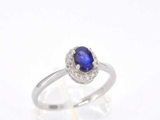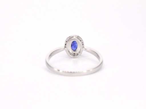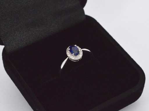 Bague d’entourage en or blanc avec diamants et saphir