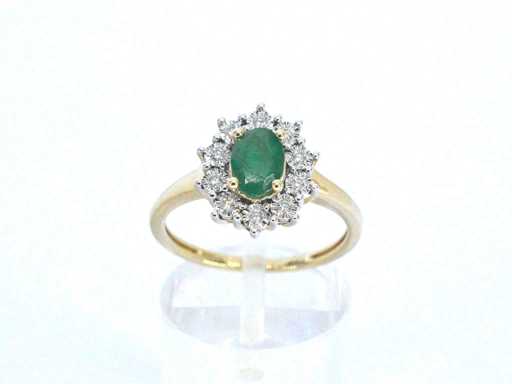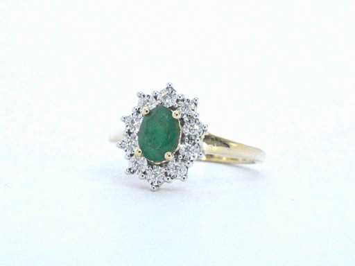 Bague en or avec une émeraude ovale verte et diamants