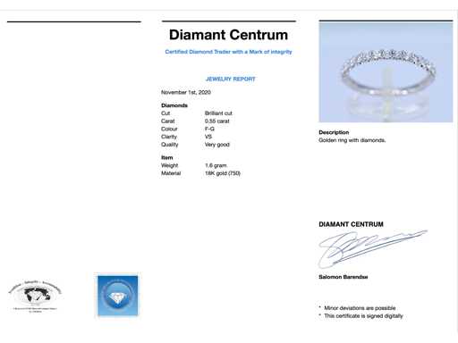 De winkelwaarde die bij de sieraden en diamanten vermeld staat is de historische retailprijs. Dit is de prijs waarvoor het sieraad in het verleden of in sommige gevallen nog steeds bij de juwelier in de etalage heeft gelegen/ligt. De waardebepaling is een beoordeling van een gecertificeerde diamantair en lid van de Beurs voor den Diamanthandel te Amsterdam.