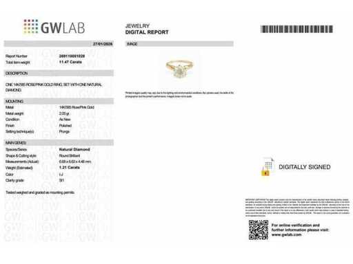 Bague en or rose 14 carats avec 1,21 ct. Diamant naturel