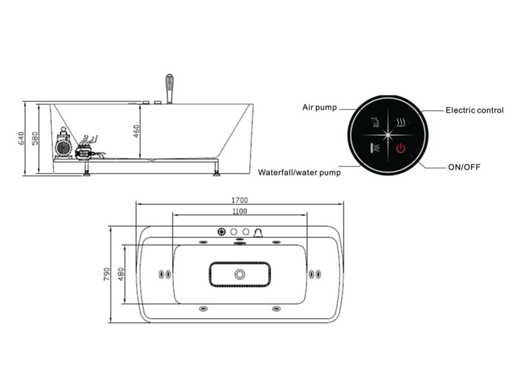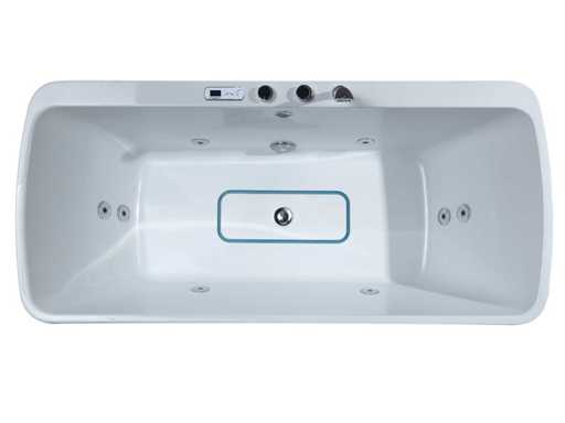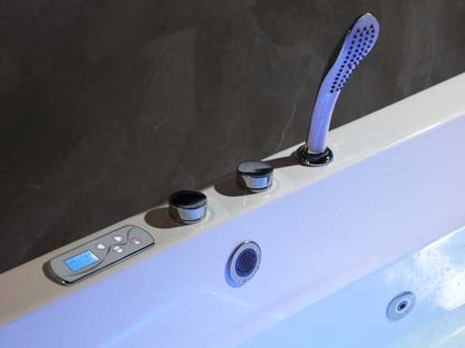 Sortie de décharge avec tuyau d’eau flexible, chauffage 2000 watts, avec prise plug and play 220v, pompes de massage 1x 1 hp pompe hydraulique et 1 pompe à air (réglable en force), jets de massage hydro-masseurs et divers jets d’air, enceintes Bluetooth, température de l’eau réglable, panneau de contrôle numérique, protection du niveau d’eau et de passage à sec, douche à main avec robinet, résistance des jets réglable, robinet chromé en laiton, base réglable et en acier inoxydable