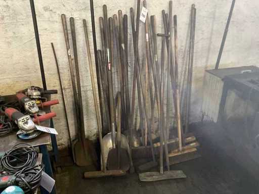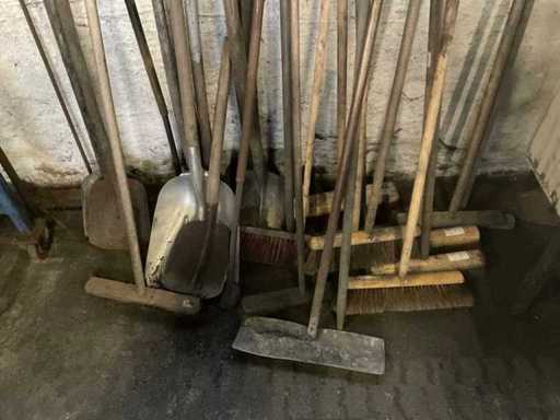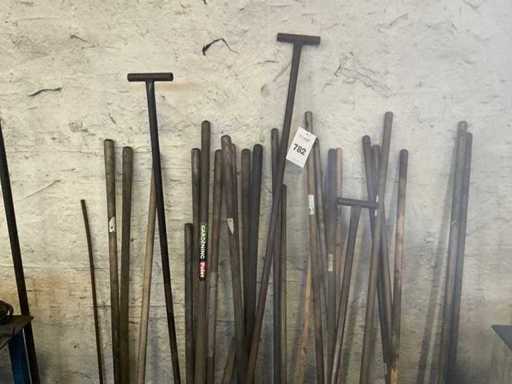 Série de balais et de chauves-souris, environ 11 chauves-souris et environ 9 balais