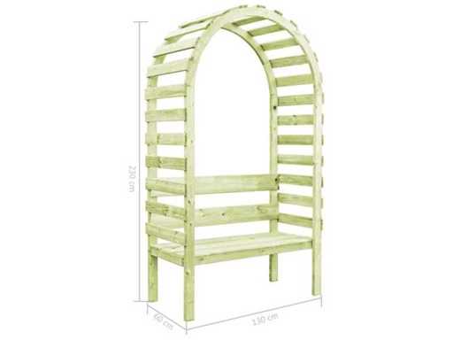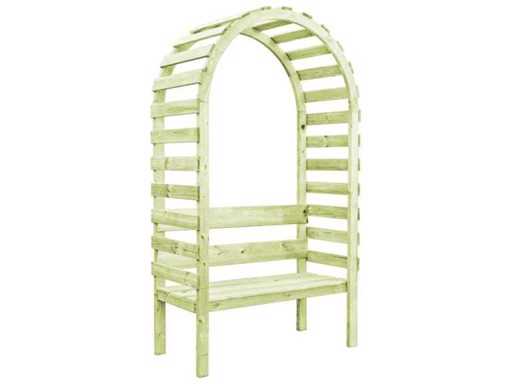 Banc de jardin en pins avec arc de rose - 130x60x230 cm