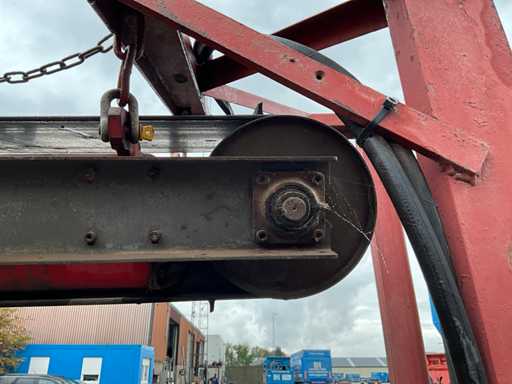 Le support s’adapte sur la bande transporteuse de l’aileron 883+. La largeur de la bande transporteuse est de +- 63 cm et la longueur de +- 360 cm