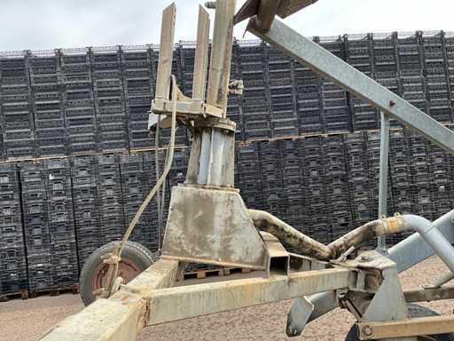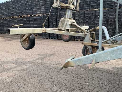 équipé d’une couronne d’orientation, d’un canon de pulvérisation « 20 mm arroseur » avec empattement à 3 roues, d’une base à un essieu (réglable en largeur), de millimètres de pulvérisation réglables avec ordinateur d’irrigation, d’une cellule solaire + d’une alimentation par batterie,