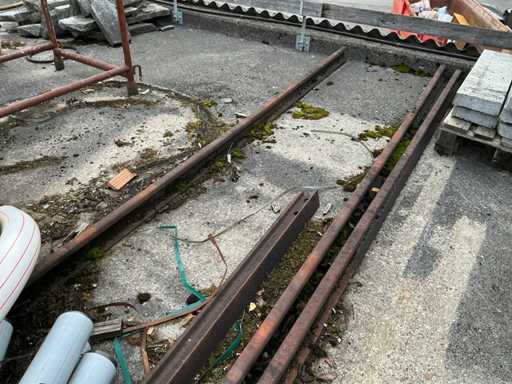 Poids estimé env. 500 kg, rails jusqu’à une longueur d’environ 6 mètres, quantité et plus de détails voir photos