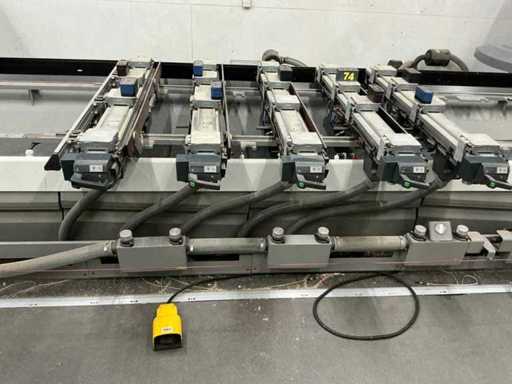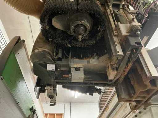 Ne fonctionne pas : L’essieu B doit être reconstruit en raison d’une fuite de barrière des contacts de traînée de l’eau de refroidissement défectueuse HSK-F63 Unité de forage disponible Postes de changeur d’outils : 45 pièces Pompe à vide disponible Outils inclus Broche de fraisage 1 : 5 axes directionnelles Broche de fraisage 2 : 3 axes dirigeantes Pompe à vide : Numéro [pc.] 2 Marque Becker Type VTLF 2.250 Année de construction 2011 Puissance du moteur principal [kW] 5,5 Capacité [m³/h] 244 Diamètre de connexion [mm] 60 Pression négative [barre] 200 Sans huile