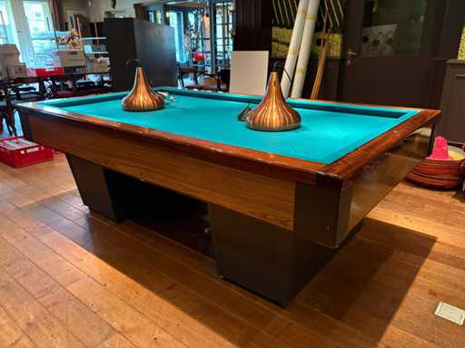 Comprend un dessus de table, des boules, une horloge de billard et des lampes