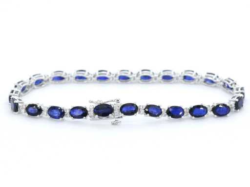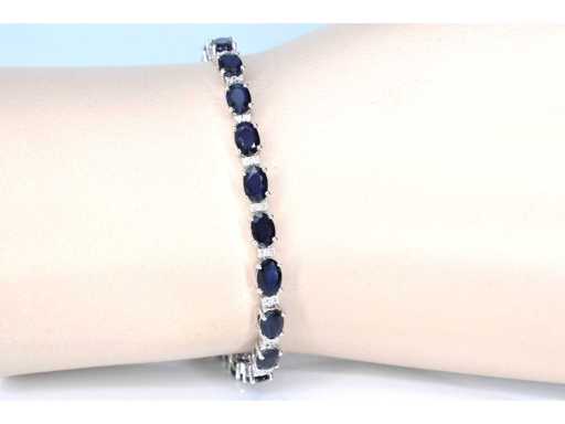 Bracelet de tennis en or blanc avec diamants et saphir