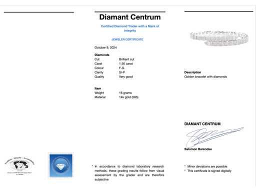naturels Diamant : naturel ; Quantité : 266 pièces ; Coupe : Coupe ronde ; Poids (carat) : 1,50 carat ; Couleur : F-G ; Pureté : SI-P ; Qualité de la coupe : Très jolie ; Bijou : Bracelet ; Poids : 17 grammes ; Dimensions/longueur : ajustable ; Matériau : or 14 carats (585) ; État : Neuf ; Emballage : Boîte à bijoux de luxe ; Explication : La qualité a été prise du rapport correspondant à l’article. L’évaluation est une évaluation d’un négociant certifié en diamants, basée sur les prix à la consommation ; Prix à la consommation : 13 335 €