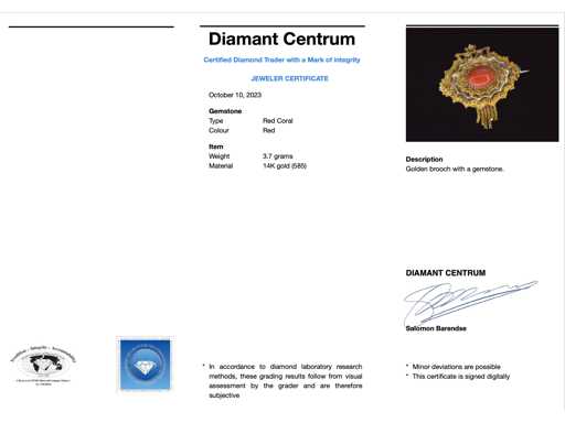 de sang Pierre précieuse : Corail rouge ; Couleur : Rouge ; Joyau : Broche ; Poids : 3,7 onces ; Dimensions/longueur : 25 x 35 mm ; Matériau : or 14 carats (585) ; État : Vintage ; Emballage : Boîte à bijoux de luxe ; Explication : La qualité a été prise du rapport correspondant à l’article. L’évaluation est une évaluation d’un négociant certifié en diamants, basée sur les prix à la consommation ; Prix grand public : 2 380 €