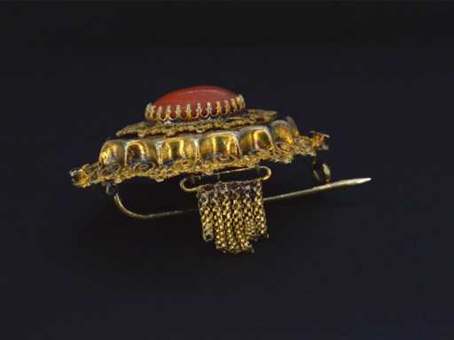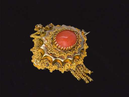 Broche dorée avec corail