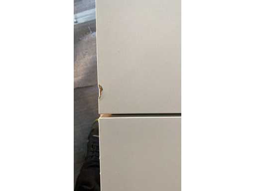 Dimensions : partie gauche LX : environ 270x60 cm ; Dimensions : partie droite LxW environ 270x60 cm ; Un cabinet haut d’environ 222 cm ;