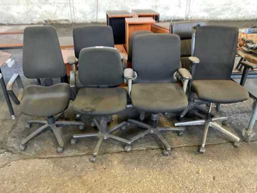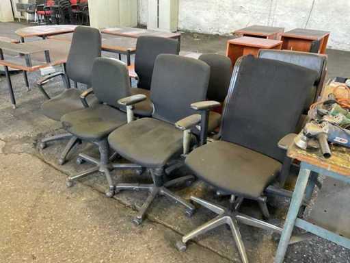 Disposition en L, 1 pièce 250 x 106 x 72 cm, 1 pièce 200 x 130 x 72 cm, équipée d’un placard avec volet et de tiroirs comprenant diverses chaises de bureau