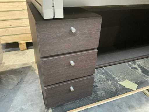 Dimensions du bureau 235x90x75 cm, équipé de 3 tiroirs