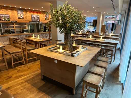 Cabines - Table de bar avec construction en marbre, éclairage et arbre