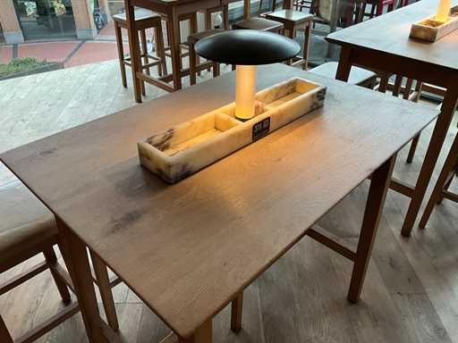 Table de bar avec superstructure en marbre et éclairage. La table est déjà déconnectée du sol et de l’électricité. Des frais supplémentaires s’appliquent à cela.