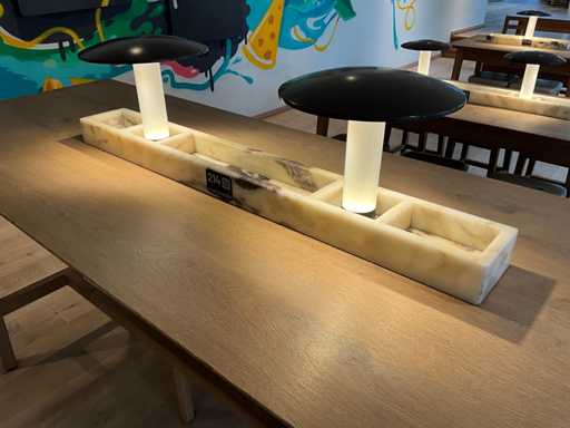Table de bar avec superstructure en marbre et éclairage. La table est déjà déconnectée du sol et de l’électricité. Des frais supplémentaires s’appliquent à cela.