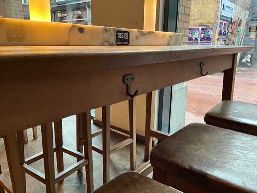 Table de bar avec superstructure en marbre et éclairage. La table est déjà déconnectée du sol et de l’électricité. Des frais supplémentaires s’appliquent à cela.