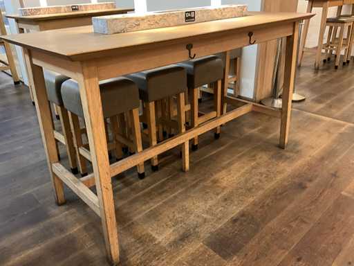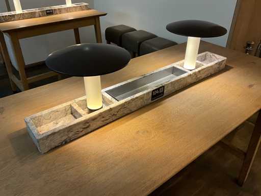 Table de bar avec superstructure en marbre et éclairage. La table est déjà déconnectée du sol et de l’électricité. Des frais supplémentaires s’appliquent à cela.